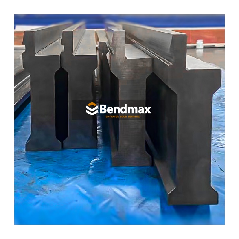 There is a complete line of standard press brake tooling is available for press brakes from 120 to 30000 kN. Single, multiple and adjustable V-dies, vertical removable style tooling and special tooling for custom applications. Bendmax manufactures high quality, precision-ground tooling made from the best materials for maximum resistance and long life. The LVD style single V brake die , made from hardened 42CrMo tool steel, is designed for forming sharp angles in precision sheet-metal parts used in electrical housings, hardware components, and light fabrication. When choosing this type of V die, ensure the V-opening corresponds to the material thickness and desired internal radius to achieve accurate results without overstressing the die. For best performance, operators should maintain clean die surfaces, ensure proper die alignment, and avoid exceeding press brake load limits to prevent premature wear or angle inconsistency.