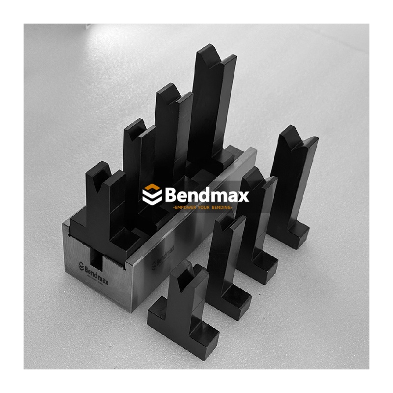 There is a complete line of standard press brake tooling is available for press brakes from 120 to 30000 kN. Single, multiple and adjustable V-dies, vertical removable style tooling and special tooling for custom applications. Bendmax manufactures high quality, precision-ground tooling made from the best materials for maximum resistance and long life. The LVD style single V brake die , made from hardened 42CrMo tool steel, is designed for forming sharp angles in precision sheet-metal parts used in electrical housings, hardware components, and light fabrication. When choosing this type of V die, ensure the V-opening corresponds to the material thickness and desired internal radius to achieve accurate results without overstressing the die. For best performance, operators should maintain clean die surfaces, ensure proper die alignment, and avoid exceeding press brake load limits to prevent premature wear or angle inconsistency.