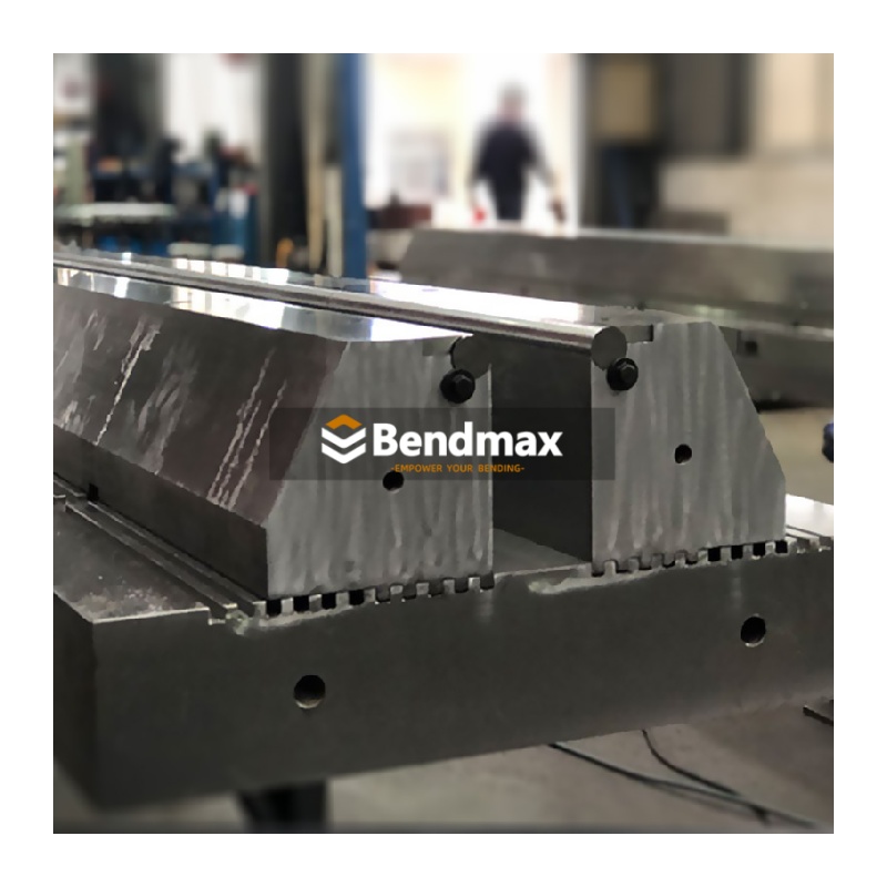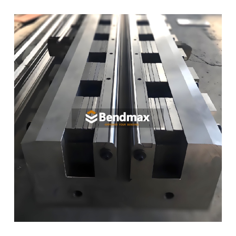 Variable width lower bending die is part of the bendmax-Adjustable Die System, offering a variable V-opening range from 25 mm to 125 mm for maximum flexibility in sheet metal bending. Designed with a 30° angle and roller radius of 8 mm, it ensures smooth material flow and minimizes surface marking during forming. With a high load capacity of 1250 kN/m, this die is ideal for bending thick or high-strength steel plates. Its adjustable structure allows quick setup changes, making it a perfect solution for workshops requiring efficiency, precision, and versatility in heavy-duty press brake operations.