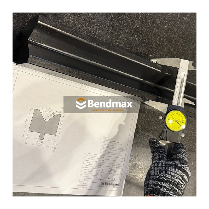 This Bendmax-System Amada press brake die features an 80° angle and a V-opening of 125 mm, making it ideal for bending thick or high-strength sheet metal. With a radius of 9.0 mm, height of 103 mm, and a maximum load of 1500 kN/m, it delivers exceptional strength and stability in heavy-duty forming. Manufactured from 42CrMo high-quality alloy steel, this large V die ensures excellent wear resistance, long service life, and consistent bending precision for industrial applications.