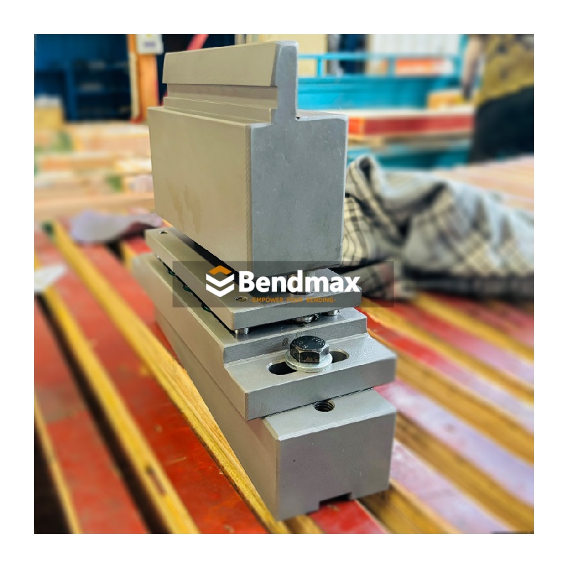 Press brake tool for bending rebar is engineered specifically for bending solid round bars and rebar without deforming the material's cross-section. Unlike standard V-dies which flatten the contact point, this tool features a semi-circular groove that cradles the rod, ensuring a perfect round profile throughout the bend. Manufactured from high-strength alloy steel, it is essential for producing U-bolts, hooks, and concrete reinforcement with consistent accuracy and structural integrity.