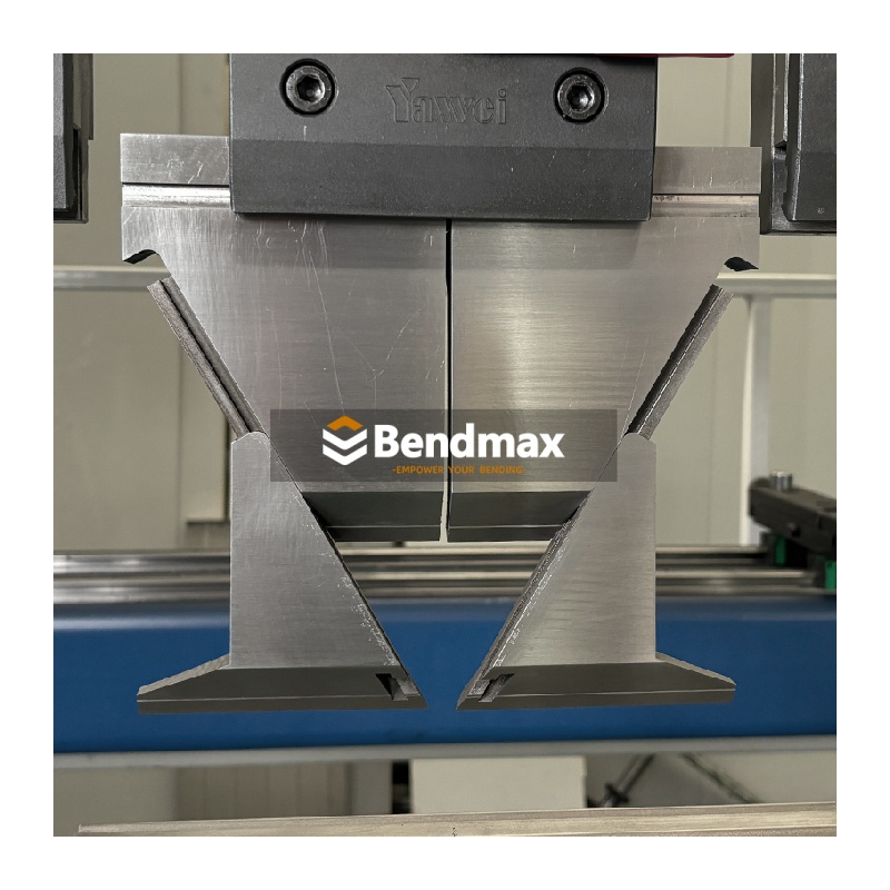 There is a complete line of standard press brake tooling is available for press brakes from 120 to 30000 kN. Single, multiple and adjustable V-dies, vertical removable style tooling and special tooling for custom applications. Bendmax manufactures high quality, precision-ground tooling made from the best materials for maximum resistance and long life. The LVD style single V brake die , made from hardened 42CrMo tool steel, is designed for forming sharp angles in precision sheet-metal parts used in electrical housings, hardware components, and light fabrication. When choosing this type of V die, ensure the V-opening corresponds to the material thickness and desired internal radius to achieve accurate results without overstressing the die. For best performance, operators should maintain clean die surfaces, ensure proper die alignment, and avoid exceeding press brake load limits to prevent premature wear or angle inconsistency.