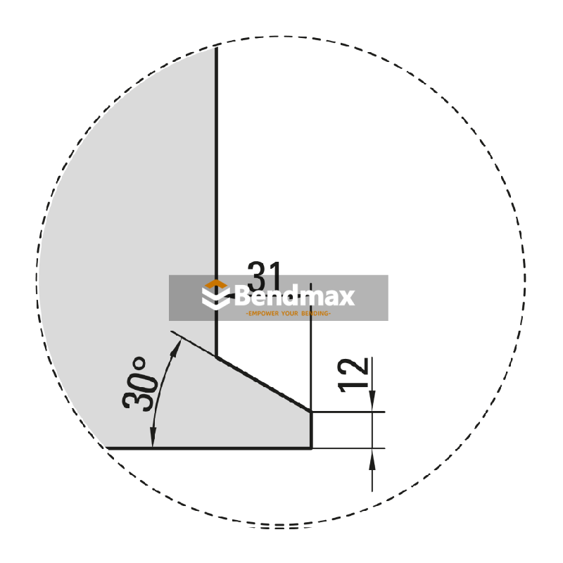 Designed for narrow acute angle bending, this die enables the production of precise sharp-angle profiles. It also supports maximum load capacity during 90° bending, making it a versatile solution for both acute and conventional bending operations.