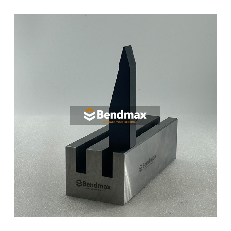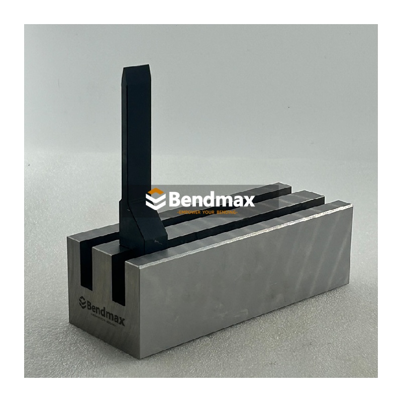 There is a complete line of standard press brake tooling is available for press brakes from 120 to 30000 kN. Single, multiple and adjustable V-dies, vertical removable style tooling and special tooling for custom applications. Bendmax manufactures high quality, precision-ground tooling made from the best materials for maximum resistance and long life. The LVD style single V brake die , made from hardened 42CrMo tool steel, is designed for forming sharp angles in precision sheet-metal parts used in electrical housings, hardware components, and light fabrication. When choosing this type of V die, ensure the V-opening corresponds to the material thickness and desired internal radius to achieve accurate results without overstressing the die. For best performance, operators should maintain clean die surfaces, ensure proper die alignment, and avoid exceeding press brake load limits to prevent premature wear or angle inconsistency.