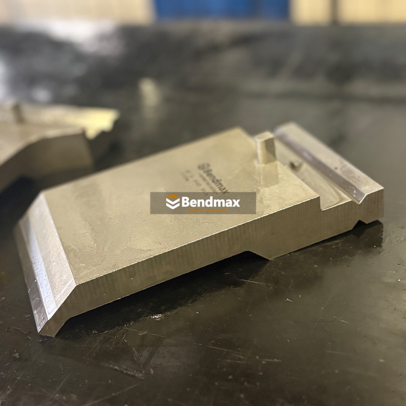 The LVD -system acute single V die, manufactured from hardened 42CrMo alloy steel, is ideal for forming sharp angles and tight radii in precision sheet metal parts used in electronics, appliance components, and fine mechanical assemblies. When selecting this type of die, match the V-opening to the sheet thickness and bending radius to ensure clean forming without overstressing the tooling. For safe use, keep the die properly aligned, avoid exceeding its load rating, and regularly inspect the working surfaces to maintain consistent bending quality.   There is a complete line of standard press brake tooling is available for press brakes from 120 to 30000 kN. Single, multiple and adjustable V-dies,  vertical removable style tooling and special tooling for custom applications. Bendmax manufactures high quality, precision-ground tooling made from the best materials for maximum resistance and long life.